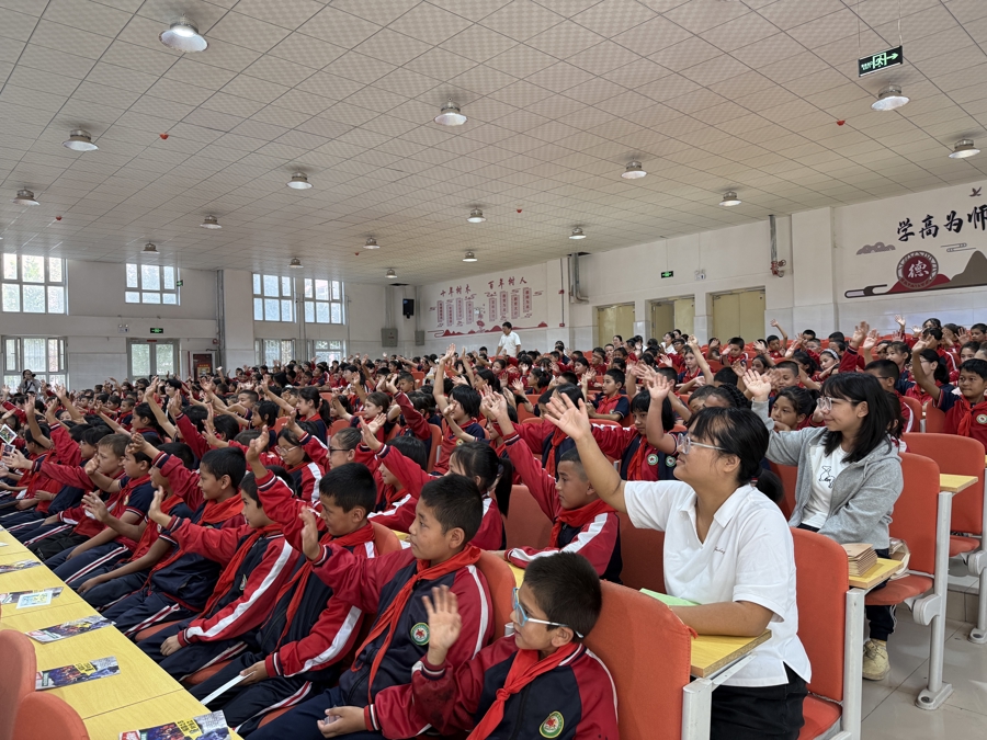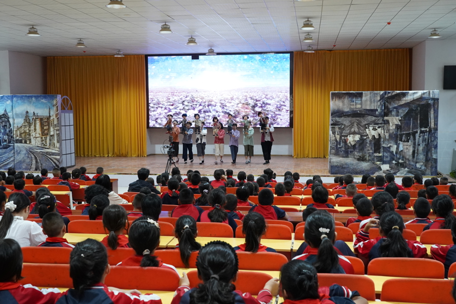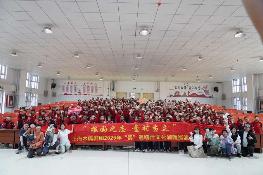 9月1日上午,正在喀什莎车县开展文化润疆活动的上海木偶剧团,携木偶音乐剧《报童之声》走进莎车县阿热勒乡向阳小学,在上海人民广播电台《援建之声》项目和莎车县融媒体中心的支持下,以“报国之志 童时当立”为主题,通过“莎车-上海”双会场直播联动的形式,为沪莎两地学子带来一堂融红色教育、理想启蒙与艺术交融的生动课程。
