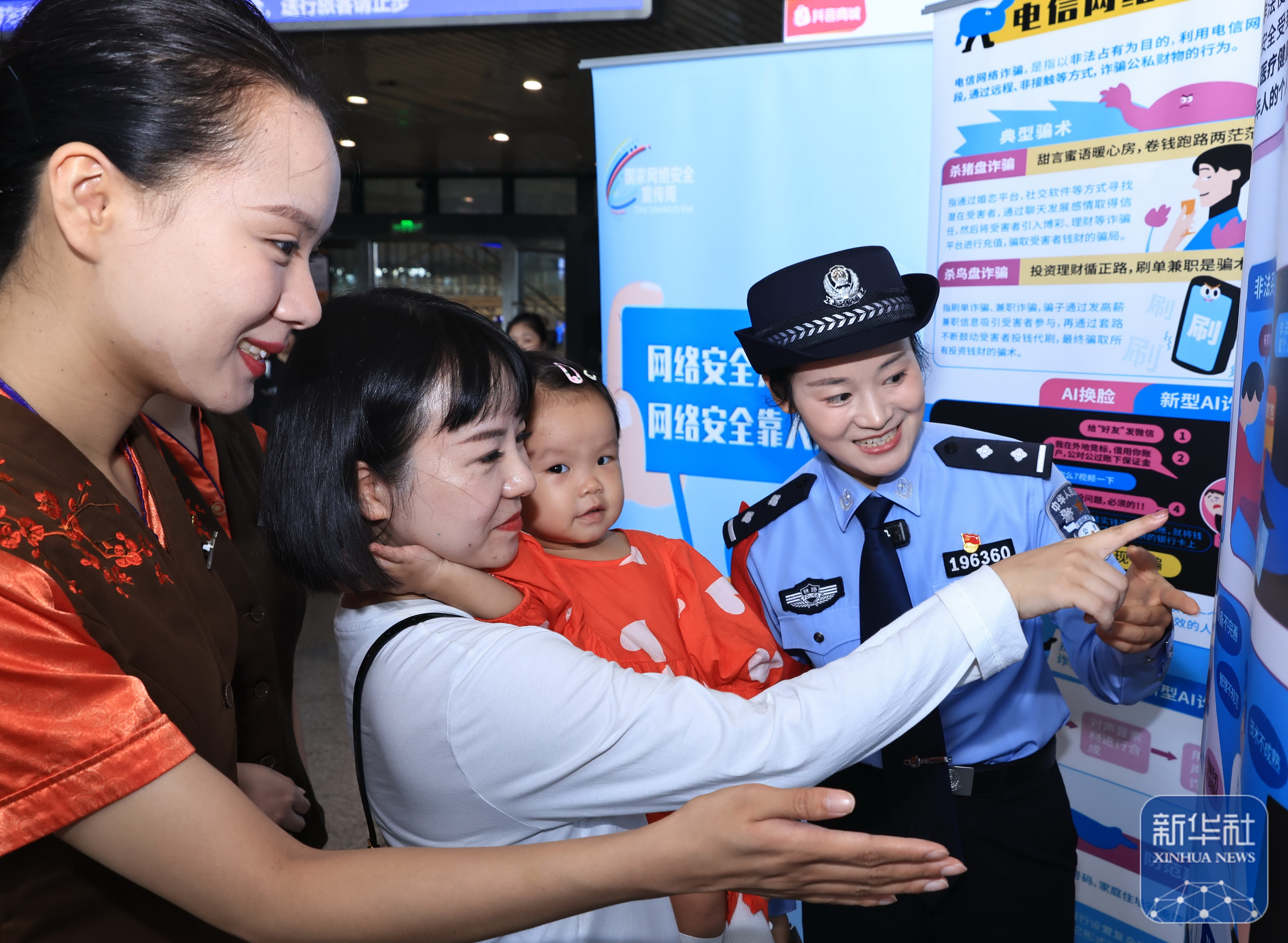 9月15日,湖北武汉铁路公安处武汉站派出所民警在武汉站为旅客讲解网络安全知识。新华社发(赵军摄)