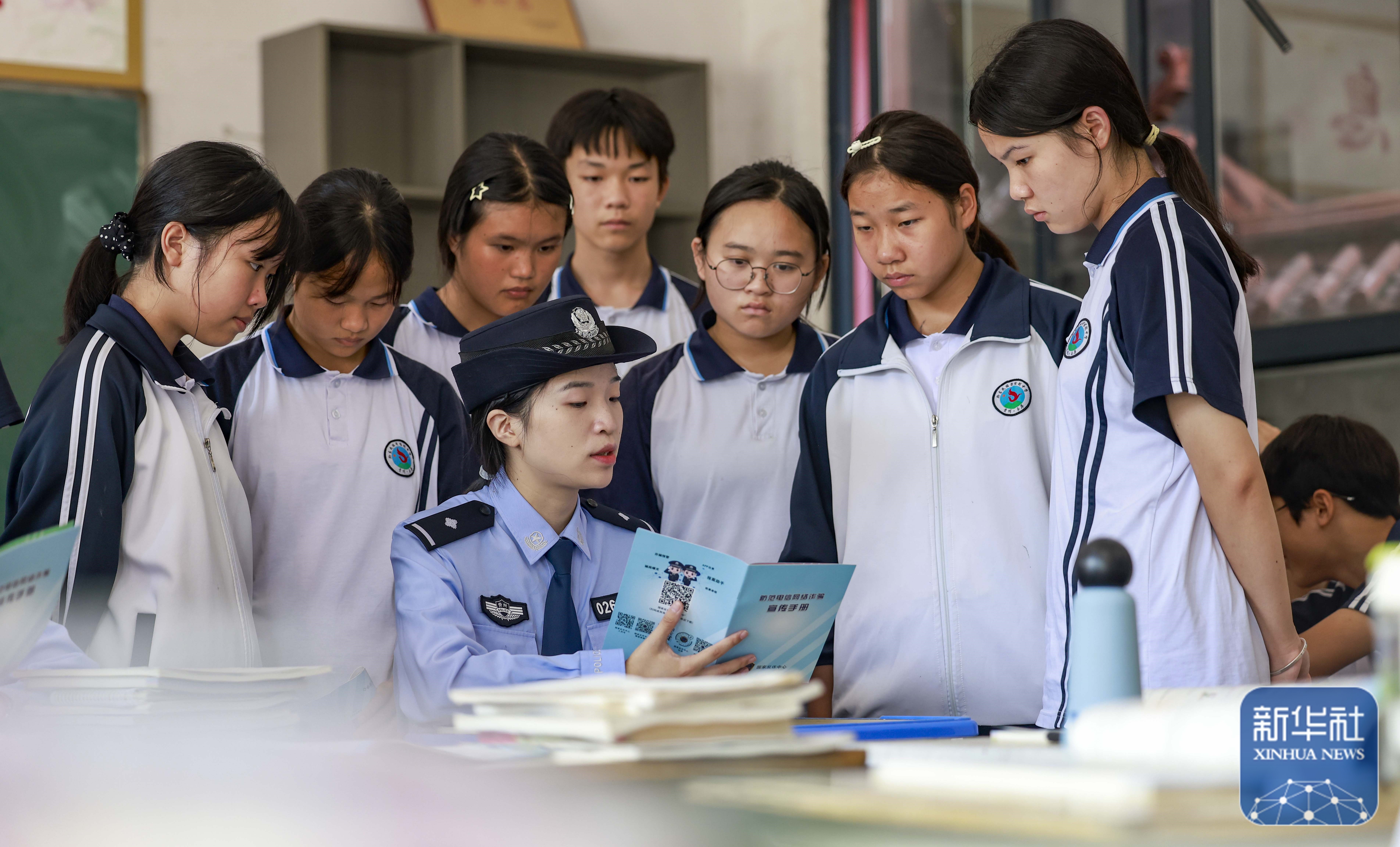 9月15日,民警在贵州省铜仁市玉屏侗族自治县黔东民族寄宿制中学给学生普及网络安全知识。新华社发(胡攀学摄)
